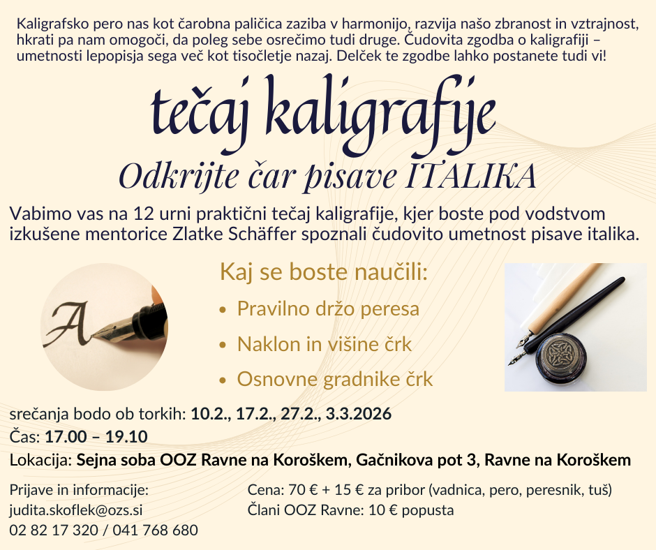 | Vabljeni na redno usposabljanje voznikov motornih vozil za prevoz blaga in potnikov, ki bo 22.3.2025, od 7.00 do 13.00 ure, v Gostilni Krebs, Podjunska ulica 4, 2392 Mežica. |